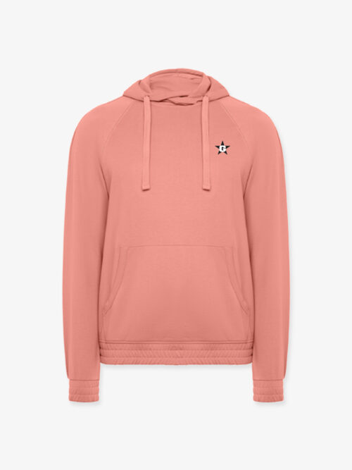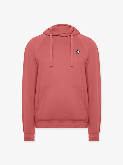 Unisex hoodie. Kangaroo style pocket. Flat drawcord with embroidered eyelets. Cuffs and waist in main fabric. Stitched detail on sleeves.